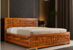 NIWAR Sheesham Wood Queen Size Bed with Storage Box | Solid Wooden Queen Size Cot | Double Bed with Box for Home (Honey Finish)